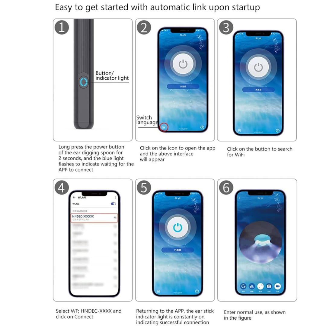 - High-speed Operation: Intelligent 6-axis gyroscope stabilizes images for smooth transmission, captures HD pictures and videos in real-time, and cleans the ear precisely without damaging the ear canal.